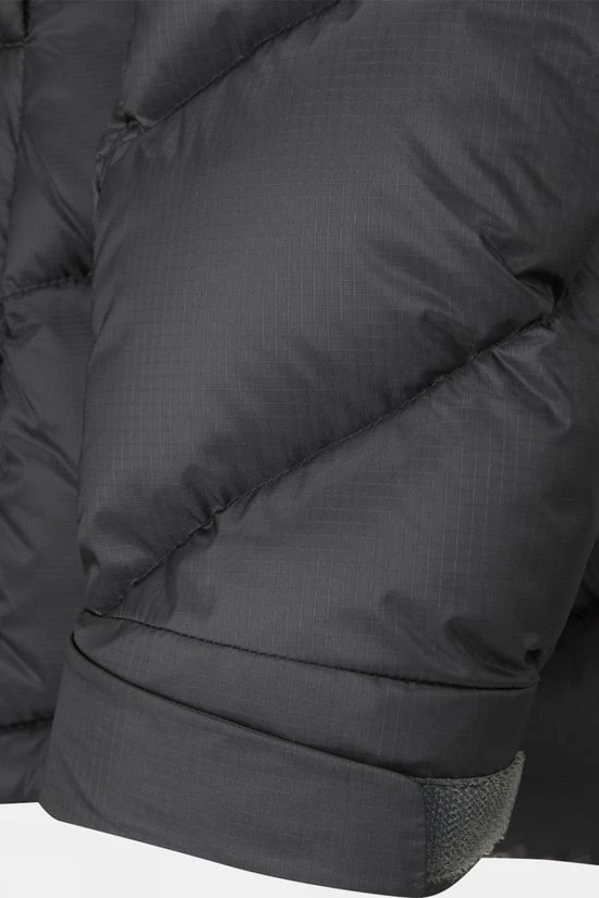 - Fully adjustable, helmet compatible down-filled hood w/ stiffened peak