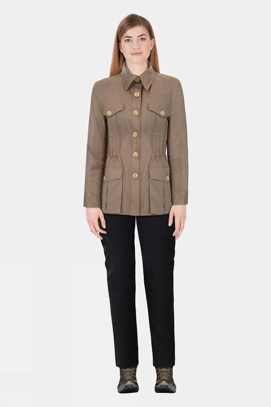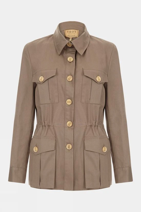 The ultimate throw-on summer jacket crafted from super-soft British cotton, the Troy London Women’s Tracker Jacket has a beautifully finished inner with contrast binding for all-season style and versatility. The internal drawstring waist gives the option for a more tailored fit, while the deep utilitarian chest and hand pockets are fastened with the same monogrammed buttons as the centre placket for classic fair-weather elegance.